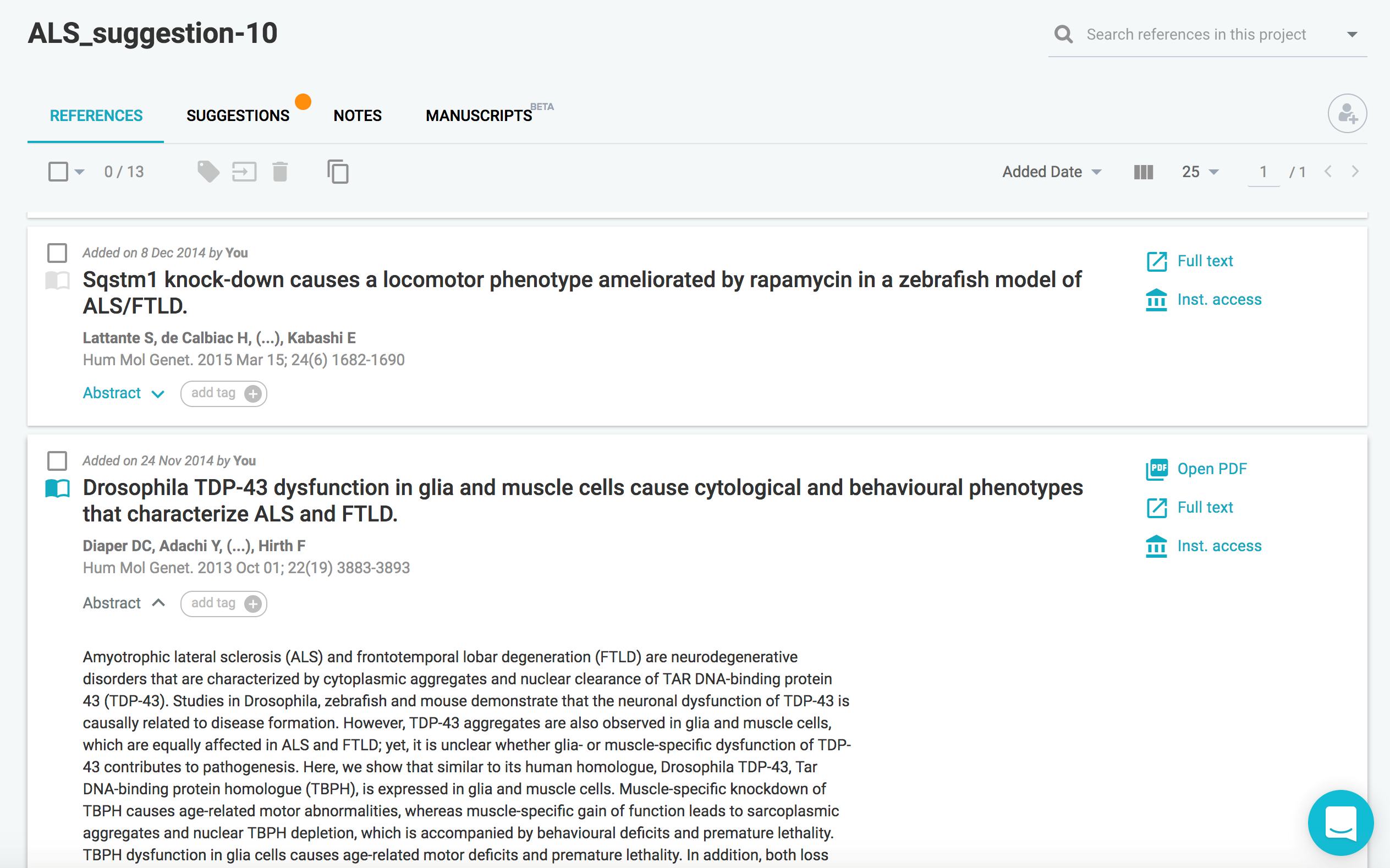 In the list view just click on the word Abstract or in the table view in the blue top right corner of the title. We’ve had a few users saying that this would make a real difference to them, especially when doing literature reviews.