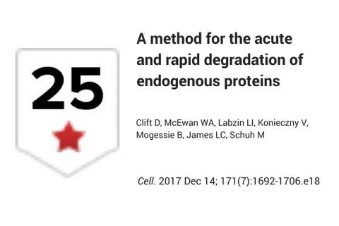 “This article by Clift and co-workers describes a novel technique called Trim-Away for the rapid degradation of target proteins in mammalian cells. Clift and coworkers demonstrate the application of this technique in several immortalized and primary cell lines, suggesting it will have a wider utility.” Yvonne Nyathi, University of Lincoln, UK