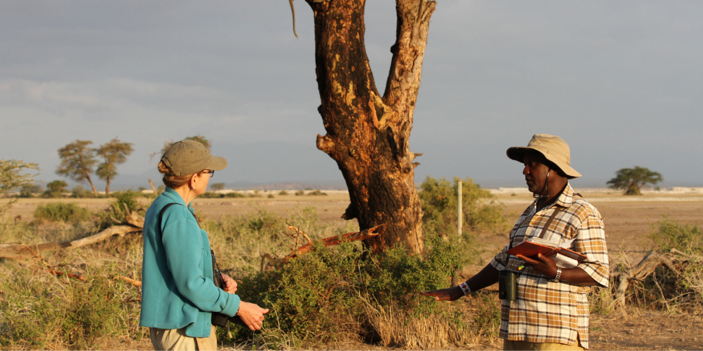 Susan in the Amboseli basin of southern Kenya, at the base of Mt. Kilimanjaro with her project manager
